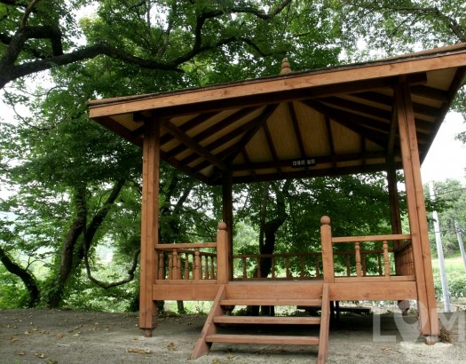 시골 골목길에 놓여진 고요한 푸른 쉼터