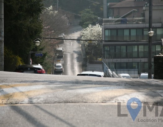머리부터 보이며 언덕길을 올라오는 모습 촬영가능한 포인트(주택가)