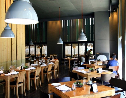 큰 규모의 오픈 키친이 인상적인 고품격 레스토랑