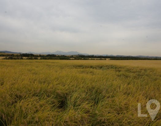 도심 근처의 황금 빛 논