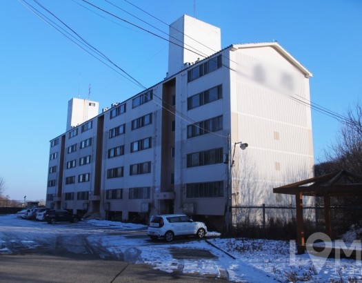 산과 뜰로 둘러쌓인 낡은 아파트