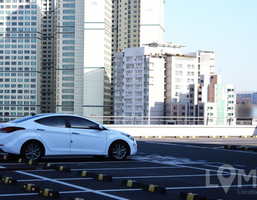 도시 건물들이 걸리는 옥상 주차장