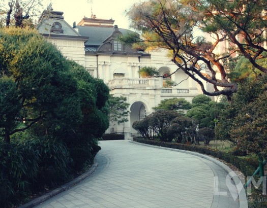 전체적인 통창 느낌의 대리석 바닥과 기둥으로 이뤄진 건물(2층로비)