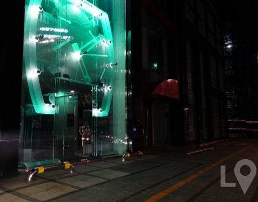 밤이 되면 은은한 푸른조명이 빛나는 건물외관