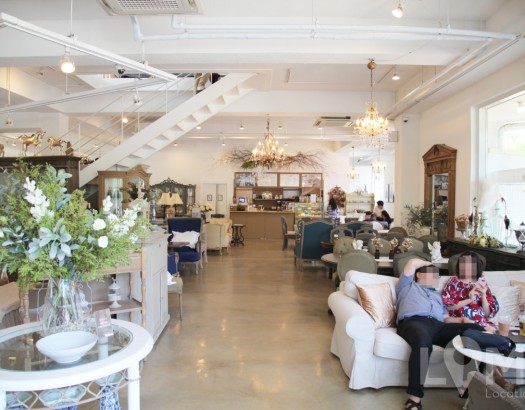 외관이 화이트로 카페분위기에, 복층으로 된 깔끔한 의류,잡화매장