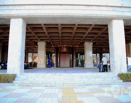 차량이 멈추고 인물이 들어가는 동선의 호텔 로비