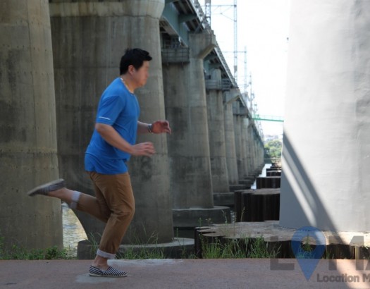 거대한 교각으로 원근감을 표현할 수 있는 철교 밑