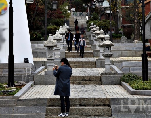 중국 느낌 가득! 돌계단과 빨간 벽돌집