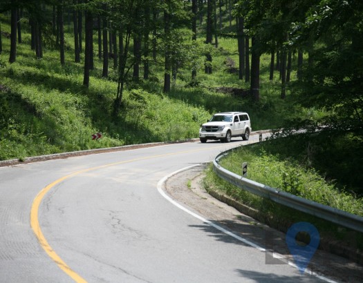 외국의 숲을 지나는 느낌의 곡선형 도로