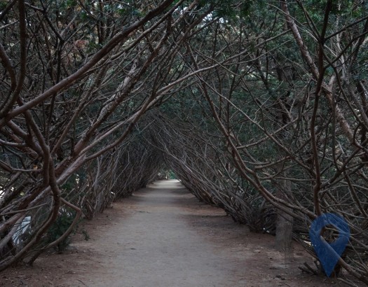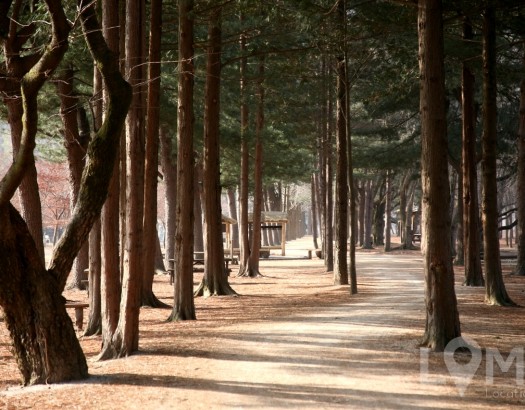 소나무들 사이 펼쳐진 산책길과 휴식처