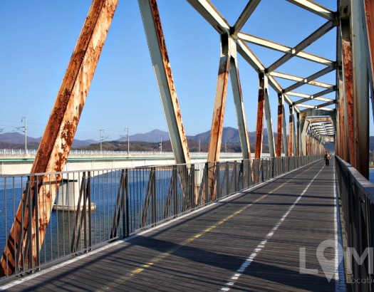 시원하게 강을 가로질러요! 나무 바닥 철교