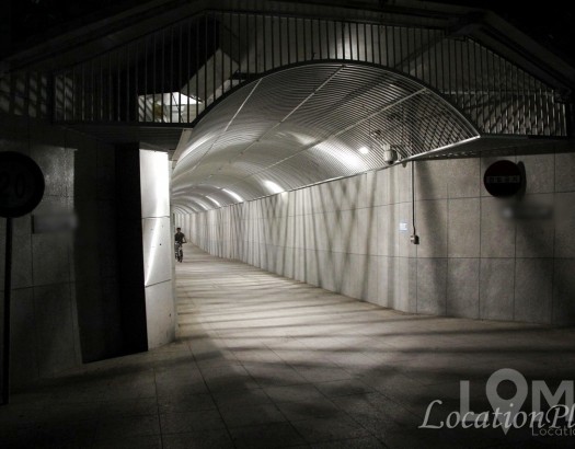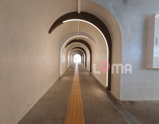 홀에 빨려들어가듯 신비로운 느낌의 보행자 터널. 독특한 디자인이라 화보, 광고 등 촬영 시 좋은 그림 연출 가능합니다.