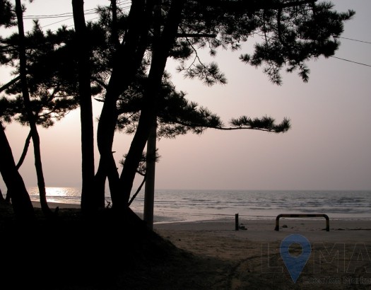 소나무 숲과 작은 섬이 보이는 서해안 바다 (석양)