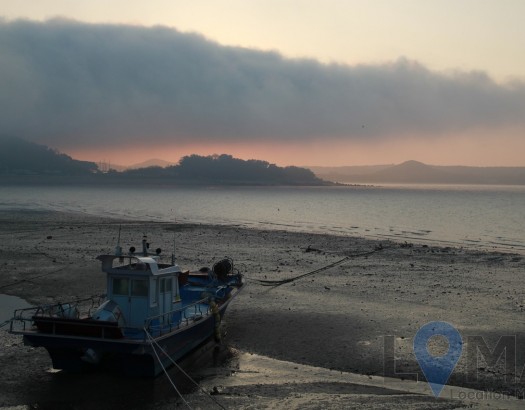 해무와 먹구름이 잔뜩 드리운 항구 풍경