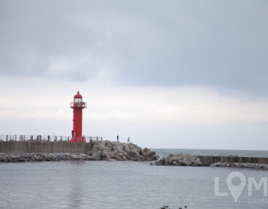 푸른바다와 빨간등대가 잘어울리는 강원도의 항구