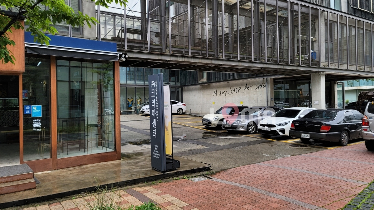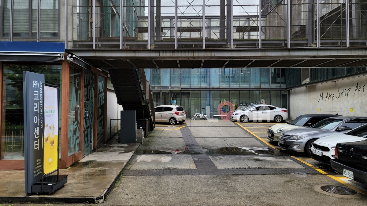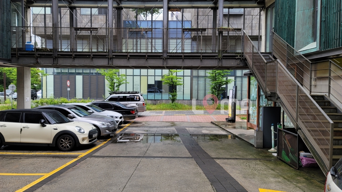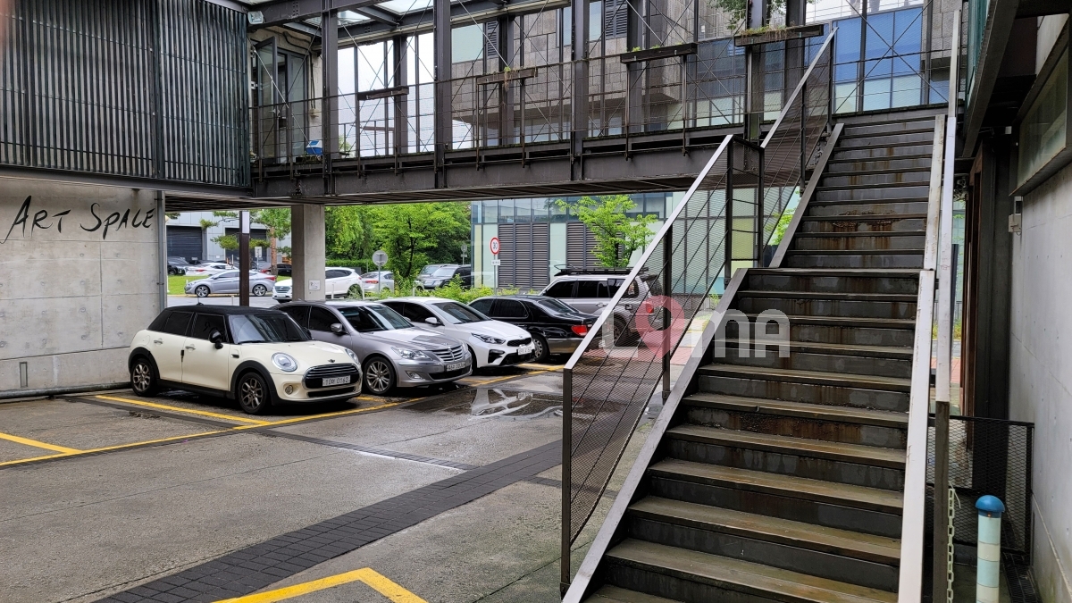 파주 코리아센터 건물 주차장. 느낌있는 건물에 둘러쌓여 있는 힙한 주차장. 계단 위에서 주차장이 한 눈에 내려다보여 촬영하기 좋습니다.