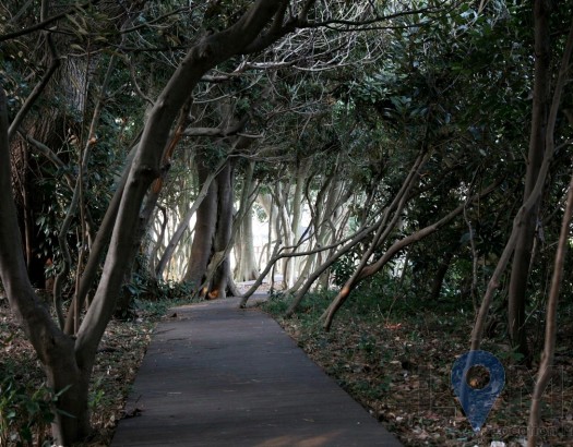 갈대밭과 바다, 도로가 함께 있는 포인트
