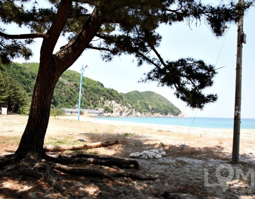 소나무 한 그루와 한적한 해수욕장