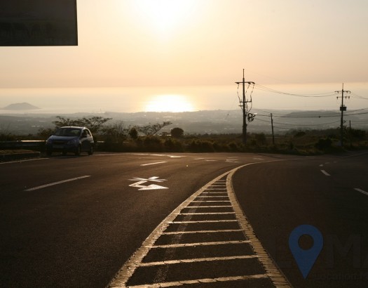 도로에서 바라본 석양과 함께 보이는 주변 풍경들