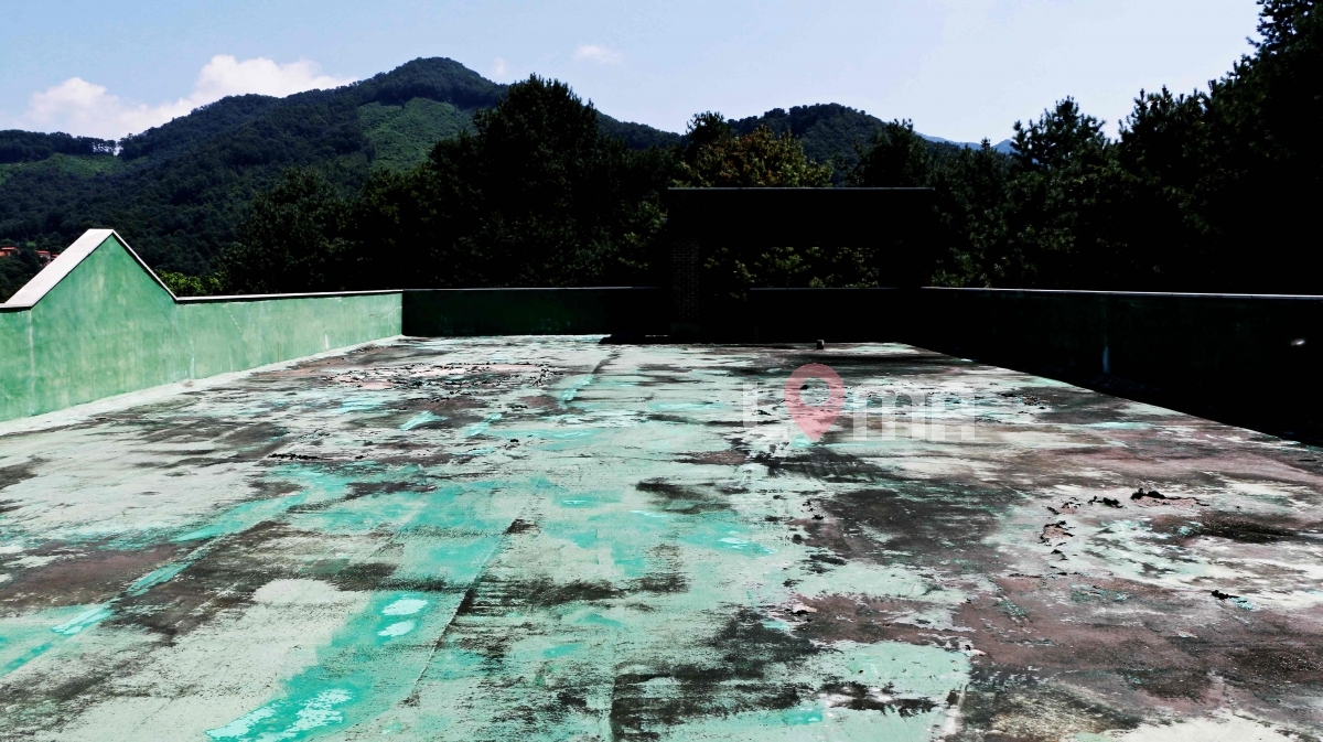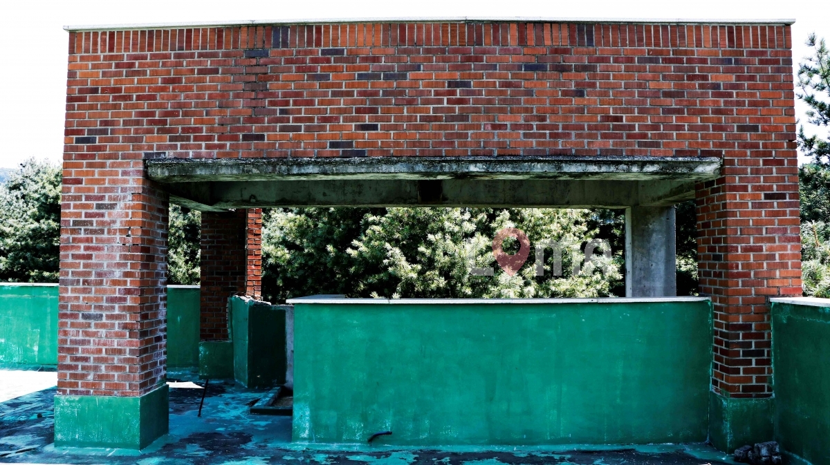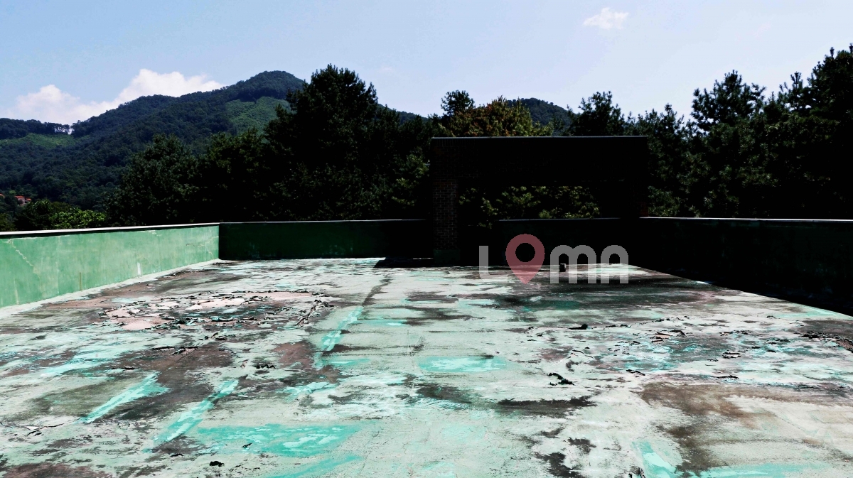 벽돌과 시멘트로 이루어진 강가 옆 폐건물 (2층)