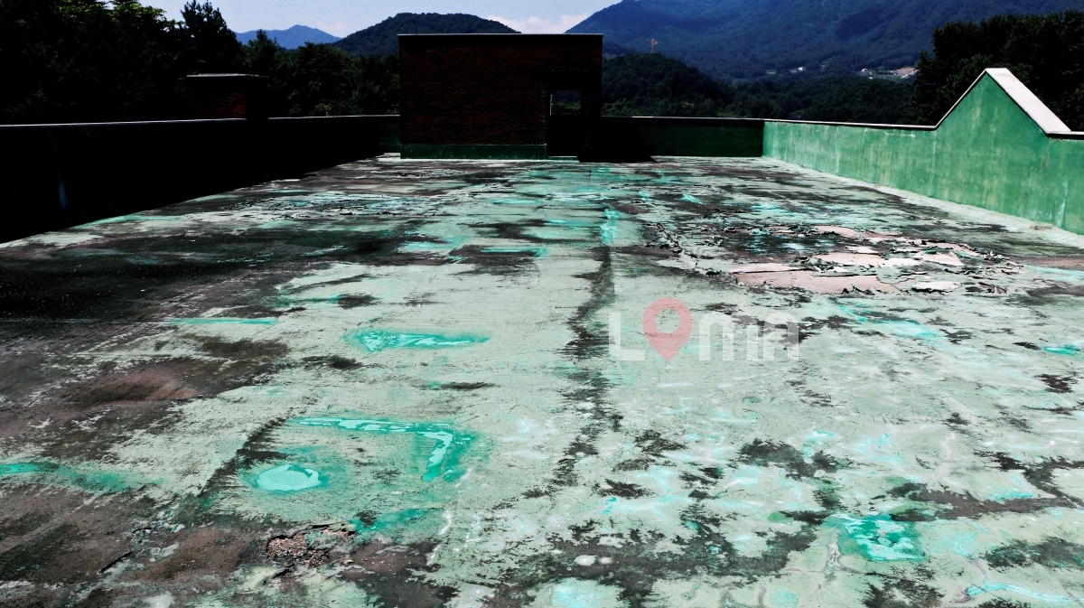 푸른 숲과 하늘은 그 위에 대조적 평온을 얹는다. 페인트가 벗겨지고 콘크리트가 드러난 옥상 바닥과 벽면은 표면은, 화보나 영상에 좋다. 자연의 생명력은 옥상의 죽어있는 질감과 겹쳐지면서 묘한 공허함을 자아낸다.