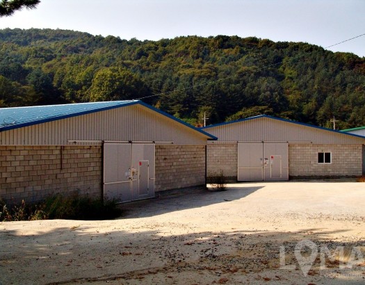 꼬불꼬불 시골 마을, 푸른 지붕 창고 외관!