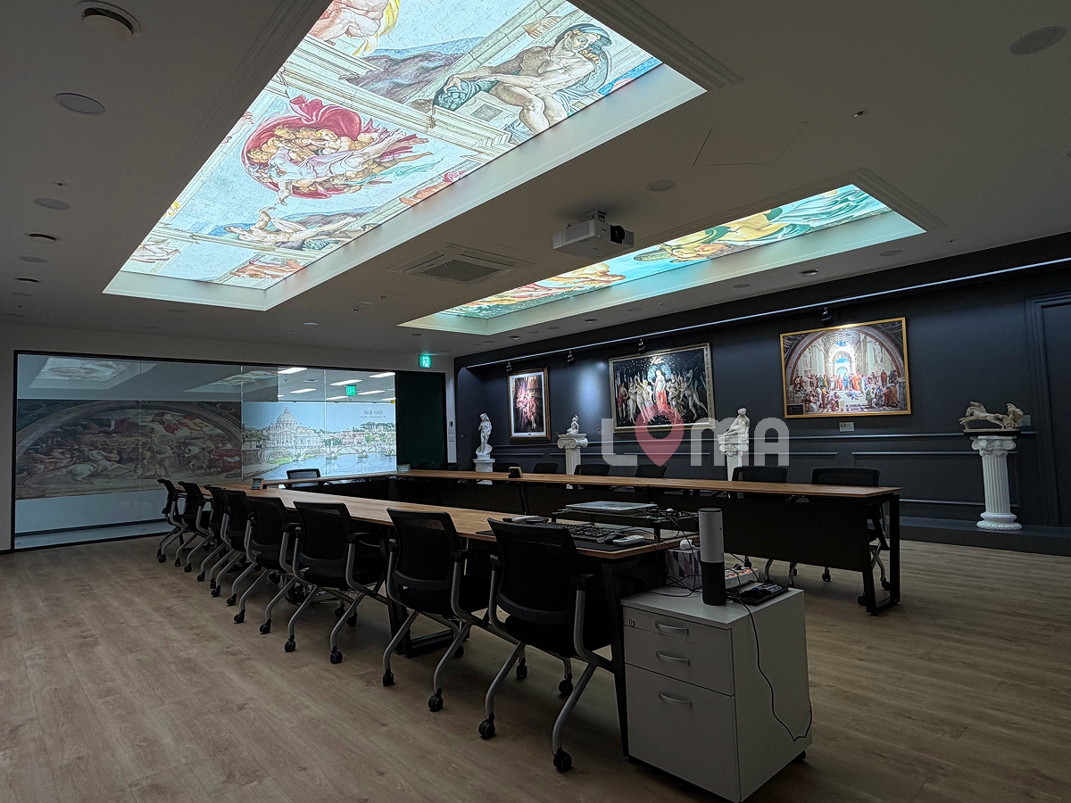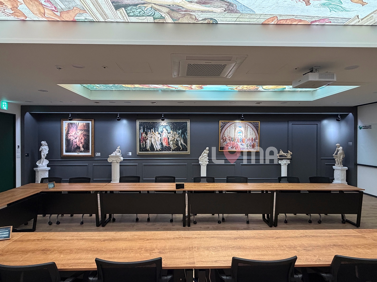다양한 예술 작품이 공간 곳곳에 배치된 이곳은 하나의 작은 미술관처럼 보이지만, 사실 치열한 개발이 이루어지고 있는 IT 회사의 내부 공간입니다. 회의실과 복도, 업무 공간으로 이어지는 동선마다 전시된 그림들은 이동하는 순간마다 하나의 전시를 거니는 듯한 경험을 선사하며, 단순한 사무 공간의 이미지를 넘어 더 확장된 감각의 세계로 자연스럽게 이끕니다. 테마가 서로 다른 회의실들은 공간마다 각기 다른 분위기와 이야기를 담아내며 대화와 아이디어에 다채로움을 더합니다. 그중 대표 회의실은 천지창조를 모티브로 한 장대한 천장화와 동시대의 조각·회화 작품이 어우러져, 깊이 있는 공간을 필요로 하는 이들에게 영감을 전하는 장소로 완성되었습니다. 단순한 대관을 넘어, 업무와 예술, 현실과 상상이 조용히 공존하는 공간을 경험해보세요. ※ 드라마 촬영 경험 有 ※ 주말 촬영 가능