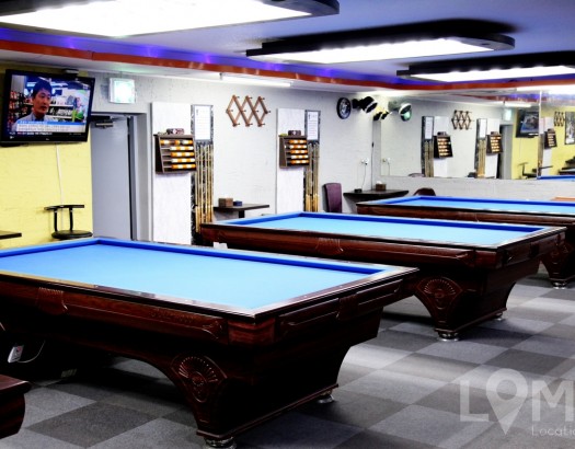 체크 패턴의 바닥과 당구장