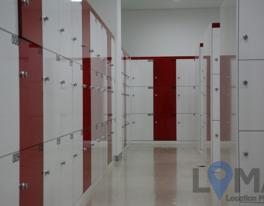 화이트톤의 레드포인트가 있는 락커룸