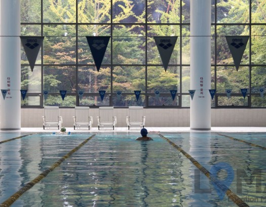 자연 속에 있는 듯한 느낌의 바깥 뷰가 깔끔한 수영장