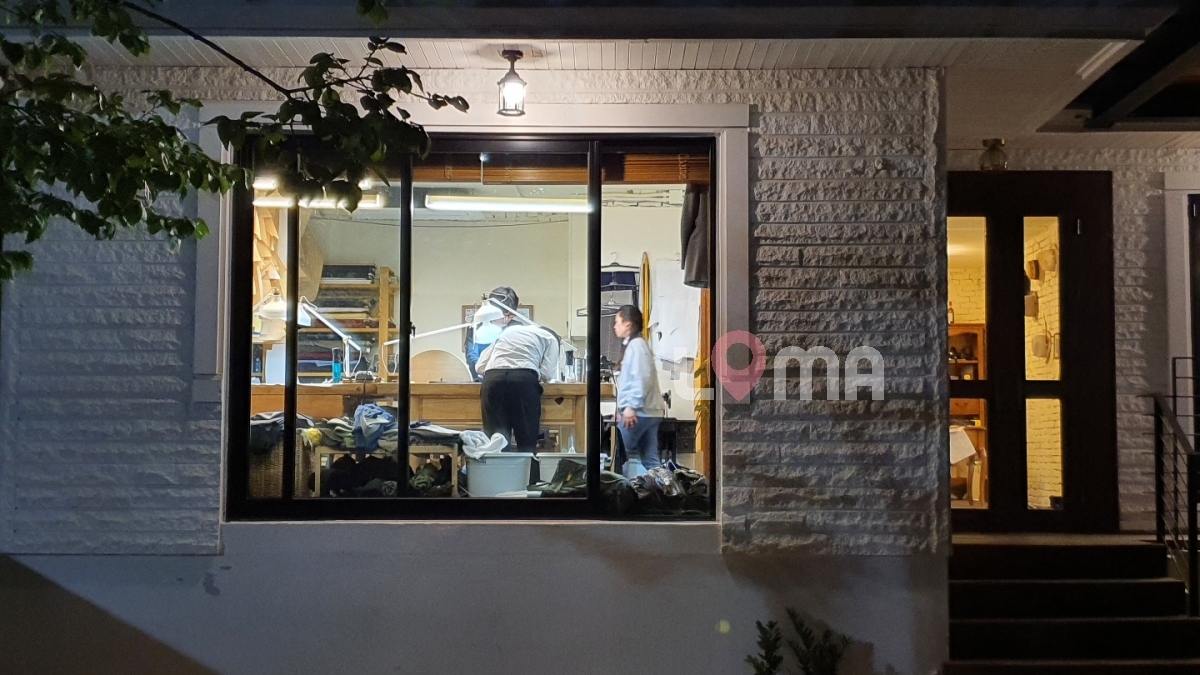 공간의 느낌은 따뜻함을 담고 있다. 이곳에 책장과 카펫 등 재봉틀의 빈티지한 느낌들이 공간에 더 많은 이야기를 불어 넣어주고 있다. 양복을 맞추는 장면, 인물이 디자인하는 장면 옷에 관련된 장면과 잘 어울리는 장소입니다. (서울시 소재, 협의팀에게 공개)