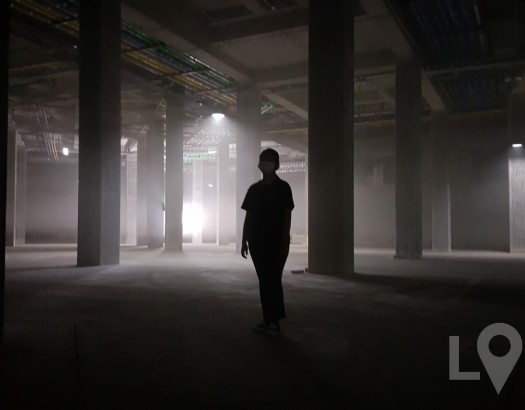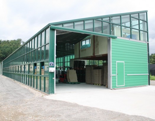 건물이 전부 유리로 된 작은 물류창고