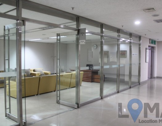 유리창벽으로 나눠진 심플한 휴게실