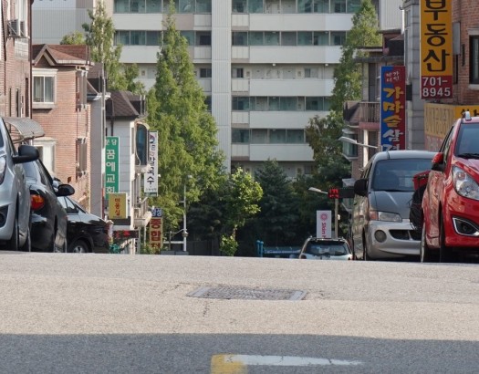 아파트가 배경으로 보이는 빌라단지의 언덕 길 2