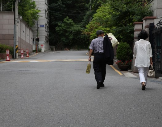 배경이 스무스한 경사가 심한 주택가 언덕 길