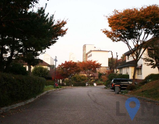 단풍 나무가 늘어선 주택이 모여있는 빌리지