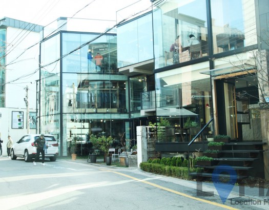 유리 건물의 포인트로 워킹 촬영 좋은 거리