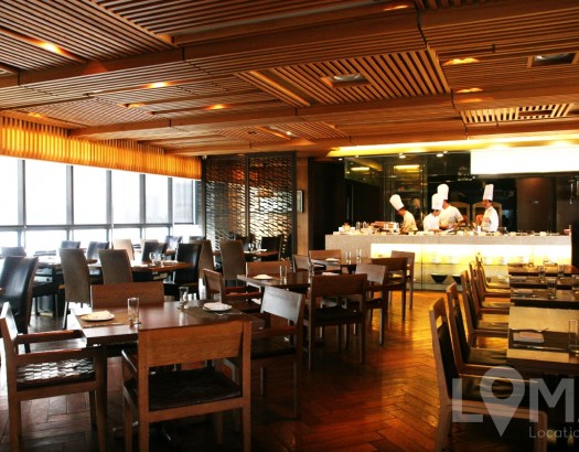 8층의 통창 좌석과, 오픈 키친(주방) 레스토랑