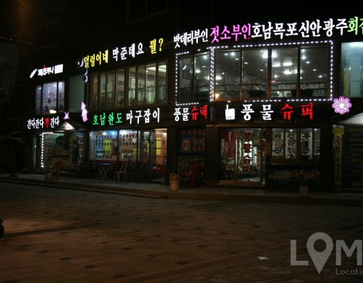 화려한 간판조명이 눈부신 인천의 횟집거리