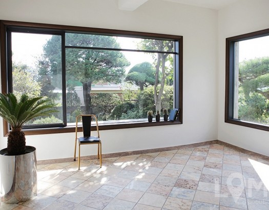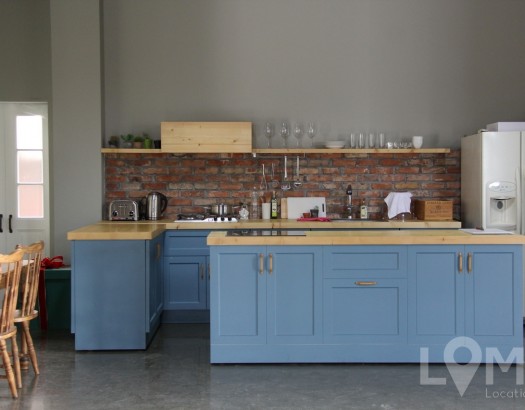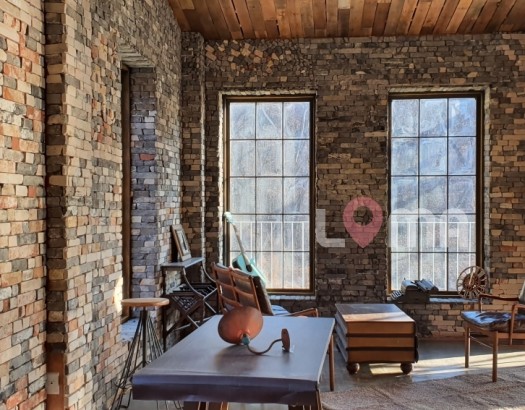 전체적으로 화이트 톤이지만 거실 한 벽면을 벽돌 느낌을 살려 따뜻한 분위기를 느낄 수 있습니다 넓은 창을 통해 비치는 채광과 초록의 뷰가 예술인 스튜디오!! 키친 쪽 천장과 벽면의 통창이 개방감을 배가시켜 주며 모던한 주택의 광고 촬영으로 제격이랍니다 (경기도 파주시 소재)