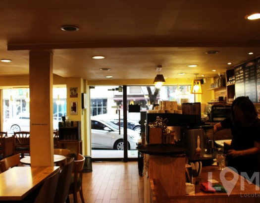 가로수가 있는 거리에 위치한 통창의 아담한 카페
