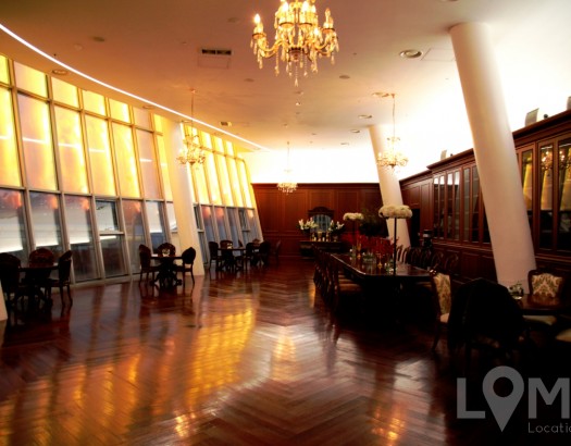 럭셔리한 창과 레스토랑의 공간