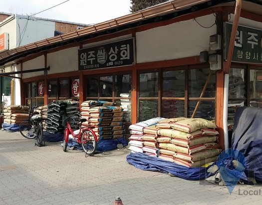 옛 모습이 그대로 보존되어 있는 나무문 쌀 가게