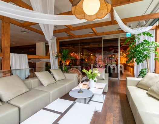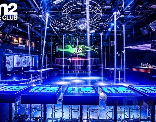 규모가 큰 클럽의 홀과 테이블, 화려한 조명을 자랑하는 공간