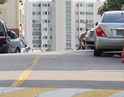 아파트가 배경으로 보이는 빌라단지의 언덕 길 1