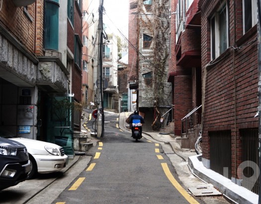 빌라촌들에 이어진 골목길들