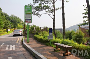 나무 의자가 포인트, 공원 옆 버스정류장