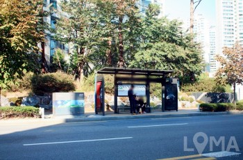 컨택트의 비행물체? 빨간 조형물 앞 버스정류장