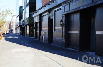 아파트 단지에서부터 상가 옆으로 인물이 지나갈만한 거리