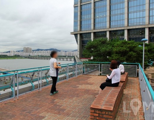 청록색 난간이 포인트, 한강이 보이는 옥상 전망대